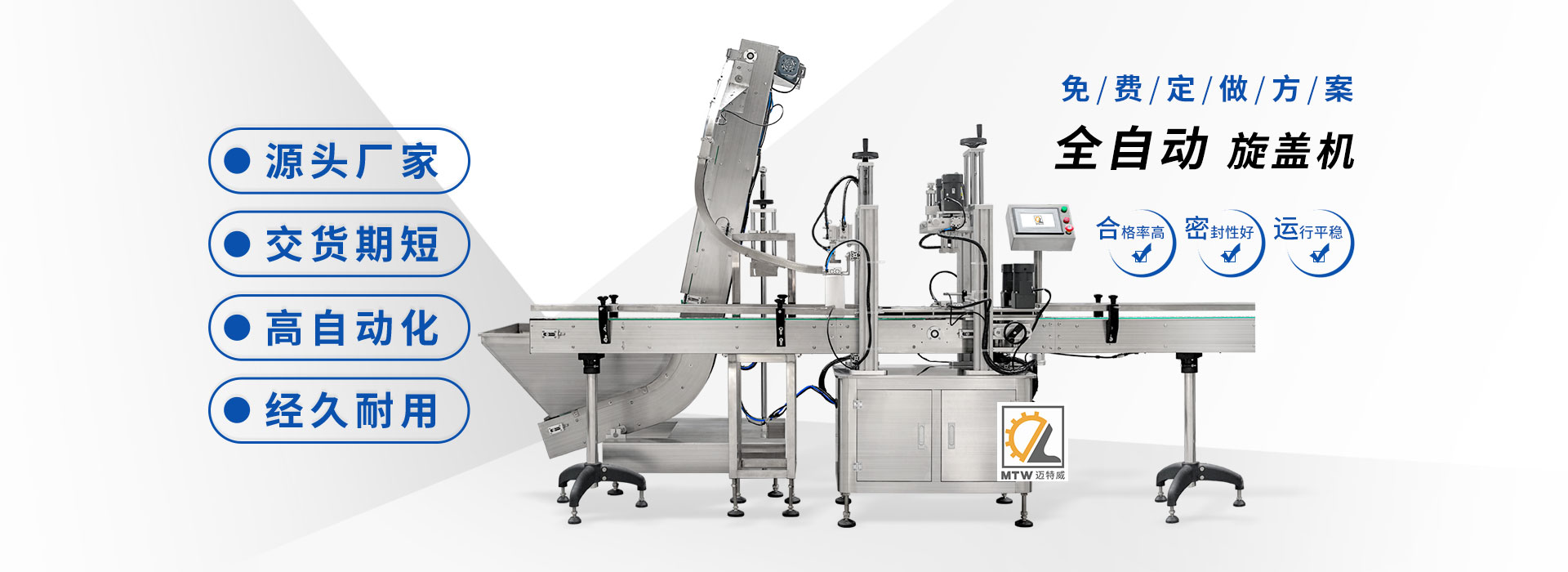 邁特威自動化設備(天津)有限公司坐落于素有京津明珠之稱的天津·武清區(qū),是國家高新技術(shù)企業(yè),專注生產(chǎn)、研發(fā)、銷售全自動灌裝機、旋蓋機、封口機、貼標機等系列產(chǎn)品,立足京津冀、服務全國,遠銷海內(nèi)外,團隊由行業(yè)高技術(shù)人士組成,為國內(nèi)外食品、日化、糧油、醫(yī)藥等企業(yè)提供滿意的包裝解決方案。 查看詳情